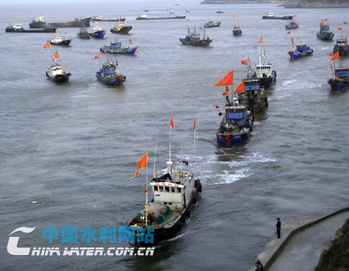 中國水利網(wǎng)站訊 4月2日下午,受大風影響, 浙江臺州市金清新閘外港的漁船有序進閘回港避風。