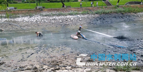 中國(guó)水利網(wǎng)站6月24日訊 清晨6時(shí)許,蒼南縣靈溪鎮(zhèn)肖江塘河整治清淤工地上,工人們?cè)缭鐏?lái)到施工現(xiàn)場(chǎng),開(kāi)始各自忙碌手頭工作。河床內(nèi)一名工人正拿著高壓水槍沖洗著河床內(nèi)的淤泥,另一名工人彎腰用雙手清理河床內(nèi)的垃圾。
