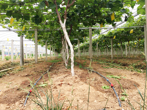 葡萄架下的滴灌設施