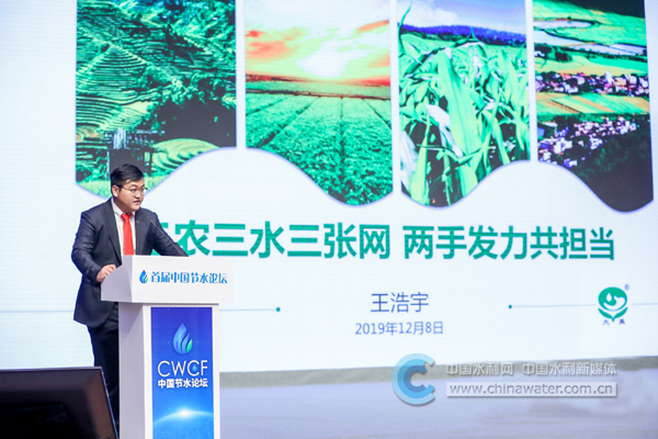 中國水利網(wǎng)站12月10日訊(記者 楊飛 席晶 王曼玉)12月8日,首屆“中國節(jié)水論壇”在北京會議中心舉辦。本次論壇主辦單位是中國農(nóng)工民主黨中央委員會、中國水利水電科學(xué)研究院、大禹節(jié)水集團股份有限公司,支持單位是全國節(jié)約用水辦公室。大禹節(jié)水集團董事長王浩宇作了題為《三農(nóng)三水三張網(wǎng),兩手發(fā)力更擔(dān)當(dāng)》的演講。