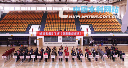 中國(guó)水利網(wǎng)站11月14日訊(記者 王健康 賈君洋)由21世紀(jì)初期首都水資源可持續(xù)利用協(xié)調(diào)小組辦公室、水利部直屬機(jī)關(guān)黨委和工會(huì)聯(lián)合舉辦的第四屆“首水杯”乒乓球邀請(qǐng)賽今日上午在北京廣安體育館開(kāi)賽。水利部部長(zhǎng)陳雷出席開(kāi)幕式并宣布比賽開(kāi)始。水利部副部長(zhǎng)周英,水利部副部長(zhǎng)、21世紀(jì)初期首都水資源可持續(xù)利用協(xié)調(diào)小組組長(zhǎng)胡四一共同為獲勝代表隊(duì)頒獎(jiǎng)。胡四一在開(kāi)幕式上講話。