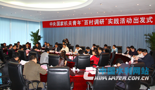 出發(fā)式由水利部青年工作領(lǐng)導(dǎo)小組副組長、直屬機(jī)關(guān)黨委常務(wù)副書記劉學(xué)釗主持。中央國家機(jī)關(guān)青聯(lián)副主席、水利部青聯(lián)名譽(yù)主席、水資源司司長孫雪濤,水利部青聯(lián)主席、辦公廳副主任吳文慶,部青年工作領(lǐng)導(dǎo)小組成員、人事司副司長曾大林,農(nóng)村水利司副司長倪文進(jìn),部發(fā)展研究中心副主任黃河等出席會議。參與百村調(diào)研活動發(fā)儀式的青年代表有:國務(wù)院辦公廳、國家發(fā)改委、教育部、財(cái)政部、國土資源部、環(huán)境保護(hù)部、住房城鄉(xiāng)建設(shè)部、交通運(yùn)輸部、鐵道部、水利部、農(nóng)業(yè)部、衛(wèi)生部、國家稅務(wù)總局、國家統(tǒng)計(jì)局、國家知識產(chǎn)權(quán)局、國務(wù)院法制辦、國務(wù)院研究室、國家行政學(xué)院、國務(wù)院扶貧辦、國務(wù)院南水北調(diào)辦、中國農(nóng)業(yè)發(fā)展銀行、中國青年報(bào)等20多個(gè)部門。各調(diào)研組組長進(jìn)行了現(xiàn)場發(fā)言。