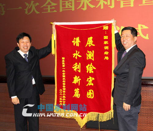國務(wù)院水利普查辦公室向國家測繪局贈送錦旗