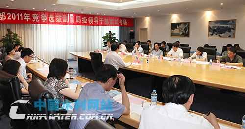 中國水利網(wǎng)站訊 (記者 席晶)7月4日,水利部2011年競爭選拔副司局級領(lǐng)導干部面試在部機關(guān)舉行。水利部部長陳雷,副部長周英、劉寧、李國英分別擔任四個面試考場的主考官。部總規(guī)劃師兼規(guī)劃計劃司司長周學文等32名部機關(guān)和在京直屬單位司局級領(lǐng)導擔任考官。