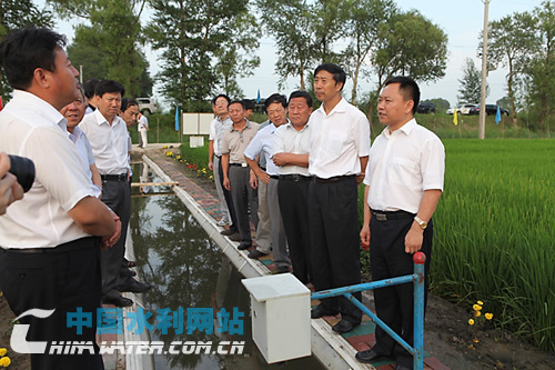 在吉林省前郭灌區(qū)紅光農(nóng)場(chǎng)察看水稻試驗(yàn)田和末級(jí)渠系建設(shè)
