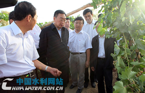 敦煌市萬畝高效節(jié)水園區(qū)總面積10385畝,是甘肅省敦煌高效節(jié)水示范點(diǎn)。園區(qū)內(nèi),葡萄、大棗、瓜菜等特色農(nóng)作物長勢喜人。園區(qū)大力壓縮低效、高耗水的作物種植面積,積極發(fā)展高效節(jié)水農(nóng)業(yè),促進(jìn)了農(nóng)民的增產(chǎn)增收,推動(dòng)了節(jié)水措施的推廣,輻射帶動(dòng)全市走上高效節(jié)水特色農(nóng)業(yè)發(fā)展之路。陳雷一行走進(jìn)莫高鎮(zhèn)示范園區(qū),來到田間地頭,認(rèn)真察看滴灌、小管出流、管灌、壟膜溝灌等灌溉設(shè)施。在結(jié)滿果實(shí)的葡萄園內(nèi),陳雷詳細(xì)詢問節(jié)水措施和農(nóng)民增收成效,指出要突出特色,高效節(jié)水,保護(hù)生態(tài),堅(jiān)持以水定結(jié)構(gòu),以水定規(guī)模,以水定發(fā)展,實(shí)現(xiàn)農(nóng)業(yè)節(jié)水、農(nóng)民增收和生態(tài)保護(hù)的多贏。