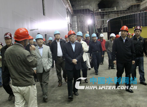 會前,陳雷率驗收組全體成員深入右岸地下電站安裝廠、500KV升壓站、進(jìn)水塔、尾水平臺等,進(jìn)行了詳細(xì)的現(xiàn)場檢查,并實地考察了正在施工中的升船機(jī)工程。