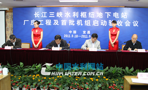 2011年9月18日至21日,由48位來自有關(guān)部委的領(lǐng)導(dǎo)和院士、設(shè)計(jì)大師等專家組成的樞紐工程驗(yàn)收組在三峽壩區(qū)召開了長江三峽水利樞紐地下電站廠