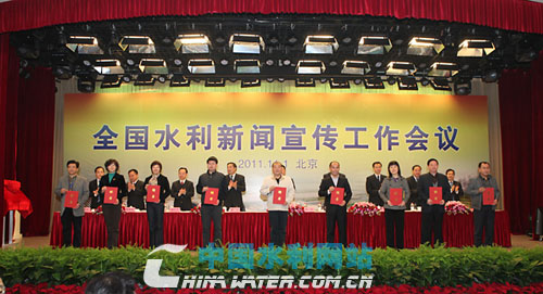董力宣讀《關(guān)于聘用水利部新聞宣傳員的通知》