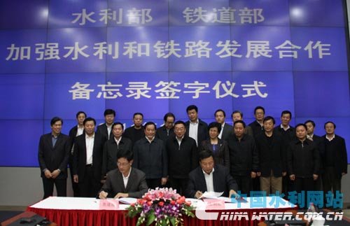 水利部總工程師汪洪,水利部總規(guī)劃師周學(xué)文,水利部相關(guān)司局和鐵道部相關(guān)司局負(fù)責(zé)人出席合作備忘錄簽字儀式。
