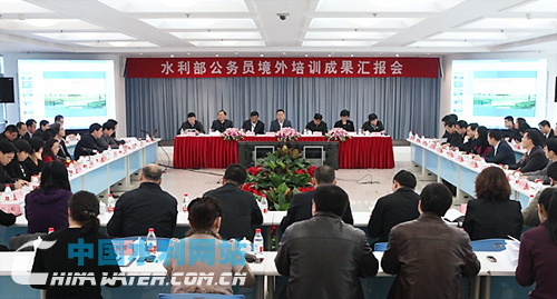 5個(gè)培訓(xùn)團(tuán)的團(tuán)長(zhǎng)全面匯報(bào)了境外專(zhuān)題培訓(xùn)的成果、啟示和建議,5位公務(wù)員代表分別暢談了感受、體會(huì)和收獲。水利部有關(guān)司局負(fù)責(zé)人,5個(gè)培訓(xùn)團(tuán)組所有在京團(tuán)員參加會(huì)議。