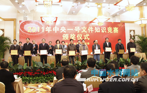 中國水利網(wǎng)站訊(記者 席晶 楊丹丹 通訊員 魏永靜) 11月25日,水利部在京舉行2011年中央1號文件知識競賽頒獎(jiǎng)儀式,歷時(shí)半年多的2011年中央1號文件知識競賽圓滿落幕。水利部部長陳雷、副部長周英出席頒獎(jiǎng)儀式,并為獲獎(jiǎng)單位和個(gè)人頒獎(jiǎng)。頒獎(jiǎng)儀式由周英主持。