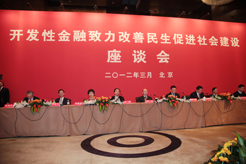 2012年3月1日,國家開發(fā)銀行在京召開開發(fā)性金融致力改善民生促進(jìn)社會建設(shè)座談會,水利部部長陳雷應(yīng)邀出席座談會并講話,強(qiáng)調(diào)要落實(shí)好水利部與國家開發(fā)銀行簽署的合作協(xié)議,加大開發(fā)性金融支持水利建設(shè)力度,為促進(jìn)經(jīng)濟(jì)社會又好又快發(fā)展提供更加堅(jiān)實(shí)的水利保障。國家開發(fā)銀行黨委書記、董事長陳元,住房和城鄉(xiāng)建設(shè)部副部長齊驥、教育部部長助理林蕙青、廣西壯族自治區(qū)政府副主席楊道喜等出席會議并講話。