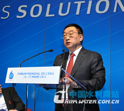 陳雷在主旨發(fā)言中向與會(huì)代表介紹了中國(guó)治水取得的成就。他指出,中國(guó)是世界上最大的發(fā)展中國(guó)家,人多水少,水資源時(shí)空分布不均、與生產(chǎn)力布局不相匹配,是中國(guó)的基本國(guó)情水情。中國(guó)政府高度重視解決水問(wèn)題,改革開(kāi)放30多年來(lái),成功應(yīng)對(duì)了一系列嚴(yán)重涉水自然災(zāi)害,建成了世界上規(guī)模最大的江河治理和水資源開(kāi)發(fā)利用工程體系,解決了3億多農(nóng)村人口的飲水安全問(wèn)題,提前6年實(shí)現(xiàn)聯(lián)合國(guó)水與衛(wèi)生千年發(fā)展目標(biāo),以年均1%的用水低增長(zhǎng)支撐了年均近10%的經(jīng)濟(jì)高速增長(zhǎng),以占世界6%的淡水資源和9%的耕地,保障了占世界21%人口的糧食安全、飲水安全和經(jīng)濟(jì)發(fā)展,這是巨大成就,也是對(duì)世界發(fā)展與繁榮作出的重大貢獻(xiàn)。