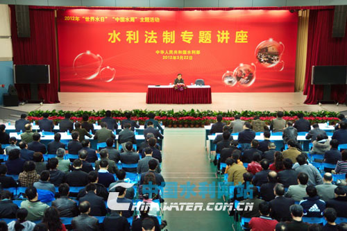 中國水利網(wǎng)站訊 (記者 張雋 通訊員 楊柳 張汝冰)3月22日是第二十屆“世界水日”,也是第二十五屆“中國水周”的第一天。聯(lián)合國確定今年“世界水日”的主題是“水與糧食安全”,今年我國紀(jì)念“世界水日”、“中國水周”宣傳活動的主題是“大力加強(qiáng)農(nóng)田水利,保障國家糧食安全”。今天,水利部舉辦法治宣傳講座,邀請國務(wù)院法制辦農(nóng)環(huán)司司長王振江做題為《推進(jìn)依法行政、加強(qiáng)法治政府建設(shè)》的專題講座。水利部副部長周英出席本次講座。