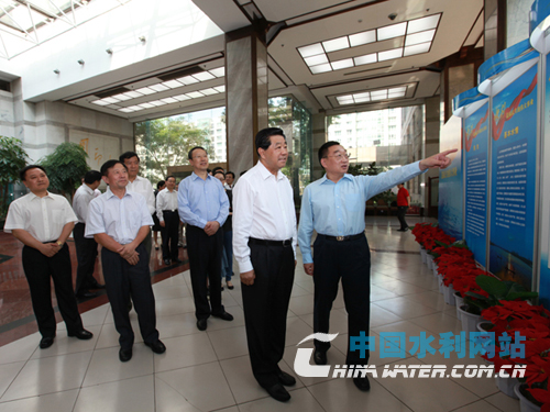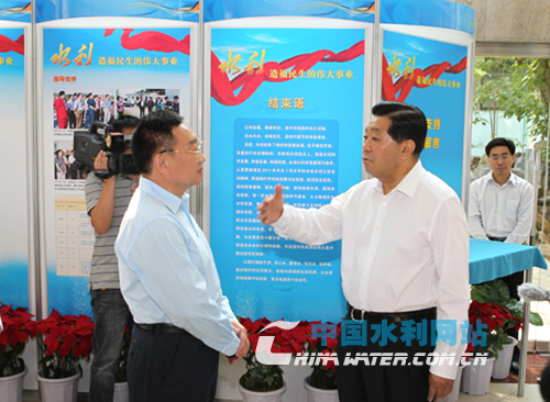 賈慶林在全國政協(xié)副主席、中央統(tǒng)戰(zhàn)部部長杜青林,全國政協(xié)機關(guān)黨組書記、副秘書長孫懷山,水利部部長陳雷等陪同下,饒有興趣地觀看了展覽。他仔細觀看展品,認真聽取講解,邊看邊詢問水利工作情況,對近年來水利事業(yè)發(fā)展取得的成就給予充分肯定。