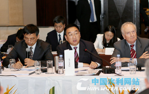 在水、能源和糧食專題會議上,陳雷深刻分析了水安全與能源安全、糧食安全的紐帶關(guān)系,全面介紹了中國水資源綜合管理、水能資源開發(fā)利用以及發(fā)展水利保障糧食安全等方面的做法和成效。他說,水利是農(nóng)業(yè)的命脈,水能資源是清潔可再生能源。中國政府高度重視水利工作,不斷推動水資源合理開發(fā)、優(yōu)化配置、高效利用和和科學管理,為促進經(jīng)濟社會長期平穩(wěn)較快發(fā)展提供了有力支撐。在水資源綜合管理方面,制定了水資源綜合規(guī)劃,出臺了實行最嚴格水資源管理制度的意見,強化涉水事務(wù)一體化管理,大力推進節(jié)水防污型社會建設(shè),積極開展江河湖庫水系連通,啟動實施國家水資源管理信息系統(tǒng)建設(shè),建立水資源管理責任和考核制度,形成合理的水價形成機制,充分發(fā)揮水價杠桿作用。改革開放30多年來,中國以年均1%的用水低增長支撐了年均近10%的經(jīng)濟高速增長,2010年萬元工業(yè)增加值用水量比2005年下降36.1%,2011年全國農(nóng)田灌溉水有效利用系數(shù)達到0.51。在水能資源開發(fā)利用方面,積極推進節(jié)能降耗和綠色發(fā)展,制定了促進水電發(fā)展的政策措施,水電裝機位居世界第一,年發(fā)電量6626億千瓦時,有效改善了中國能源結(jié)構(gòu),有力促進了中國經(jīng)濟社會發(fā)展,為改善生態(tài)環(huán)境、減緩全球氣候變化作出了貢獻。在水與糧食安全方面,嚴格保護耕地和水資源,建設(shè)了較為完善的農(nóng)田灌排工程體系,在連續(xù)30多年保持農(nóng)業(yè)灌溉用水零增長的情況下,糧食產(chǎn)量增長了78.5%,特別是2004年以來糧食連續(xù)8年增產(chǎn),2011年糧食總產(chǎn)達到5.7億噸。中國以占世界6%的淡水資源、9%的耕地,保障了占全球21%人口的糧食安全,水利發(fā)揮了至關(guān)重要的作用。