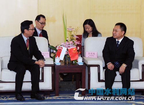 李國英代表水利部對趙文良一行來華參加第五屆黃河國際論壇表示熱烈歡迎。他回顧了水利部與新加坡環(huán)境水資源部在水資源領(lǐng)域的交流和友好合作,并對新加坡先進(jìn)的水處理技術(shù)和水資源節(jié)約保護(hù)政策給予了高度評價。他說, 新加坡在水資源利用和保護(hù)方面有許多經(jīng)驗和做法值得中方學(xué)習(xí)借鑒。中新雙方在水資源領(lǐng)域已經(jīng)建立了良好的合作基礎(chǔ),在國際水事活動中也有著良好的配合。2010年,中國水利部與新加坡環(huán)境水資源部簽署了在水資源領(lǐng)域合作諒解備忘錄,標(biāo)志著中新水利交流合作有了長期的框架和目標(biāo),為今后深入、廣泛、持續(xù)地開展中新水利交流合作奠定了基礎(chǔ)。李國英對新加坡方面為中國水利部提供了多個水務(wù)領(lǐng)域的人員培訓(xùn)機(jī)會表示感謝。水利部愿與新加坡環(huán)境水資源部繼續(xù)加強(qiáng)交流,進(jìn)一步發(fā)展合作關(guān)系,拓寬合作領(lǐng)域,將中新水利合作推上一個新的臺階。