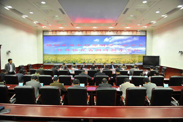 2012年11月5日,水利部副部長胡四一到湖北省調(diào)研加快實(shí)施最嚴(yán)格水資源管理制度試點(diǎn)工作并與省政府及有關(guān)部門座談。湖北省政府郭生練副省長出席座談會,水利部水資源司、長江委有關(guān)負(fù)責(zé)同志陪同調(diào)研。湖北省政府辦公廳、發(fā)改委、經(jīng)信委、環(huán)保廳、水利廳、財(cái)政廳負(fù)責(zé)同志,省水利廳各處室及直屬單位負(fù)責(zé)人參加座談。湖北省水利廳負(fù)責(zé)人匯報(bào)了湖北省加快實(shí)施最嚴(yán)格水資源管理制度試點(diǎn)工作進(jìn)展情況,省發(fā)改委等有關(guān)部門補(bǔ)充匯報(bào)了有關(guān)情況,胡四一副部長、郭生練副省長在會上講話。