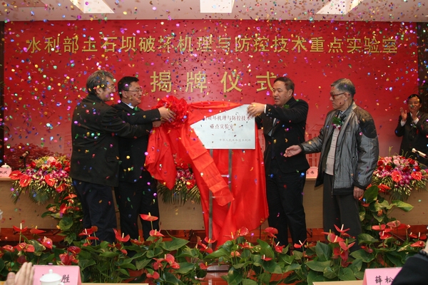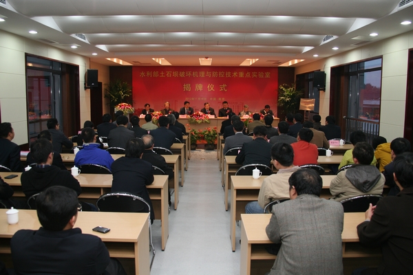 2012年11月16日,南京水利科學(xué)研究院隆重舉行水利部土石壩破壞機(jī)理與防控技術(shù)重點(diǎn)實(shí)驗(yàn)室揭牌儀式。水利部副部長(zhǎng)胡四一出席儀式并講話。水利部土石壩破壞機(jī)理與防控技術(shù)重點(diǎn)實(shí)驗(yàn)室學(xué)術(shù)委員會(huì)主任、中國(guó)工程院院士吳中如,中國(guó)科學(xué)院院士王光謙出席揭牌儀式。南科院院長(zhǎng)、中國(guó)工程院院士張建云代表重點(diǎn)實(shí)驗(yàn)室依托單位致辭。胡四一副部長(zhǎng)、吳中如院士、王光謙院士為水利部土石壩破壞機(jī)理與防控技術(shù)重點(diǎn)實(shí)驗(yàn)室揭牌。