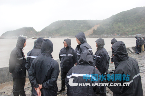 10月7日,臺風(fēng)“菲特”登陸后,國家防總工作組在鰲江指導(dǎo)防汛工作 (本站記者 王華 攝)