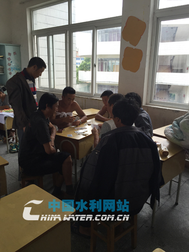 溫州市樂清縣避災(zāi)安置點被轉(zhuǎn)移的外來務(wù)工人員正在娛樂
