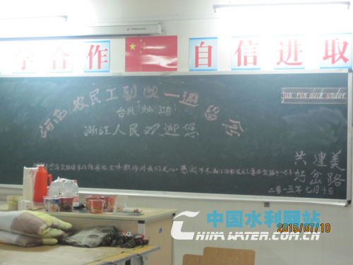 寧海岔路中心小學(xué)避災(zāi)外來務(wù)工人員在黑板上留下紀念