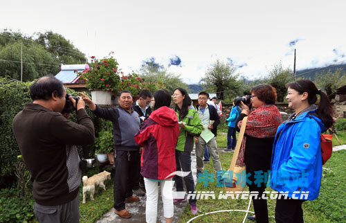 8月23日,西藏水利50年建設(shè)成就報道組在米林縣白瑪家采訪農(nóng)村飲水安全 (本站記者 繆宜江 攝)
