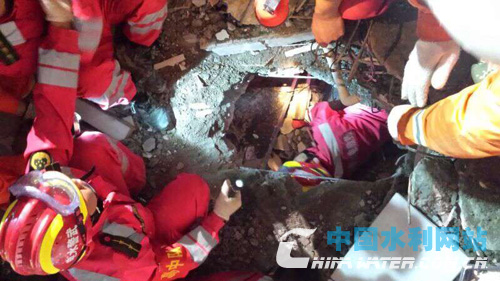 23日凌晨1時左右,武警水電部隊救援隊用生命探測儀搜索發(fā)現(xiàn)生命跡象后,用破拆設(shè)備逐步擴大作業(yè)面實施救援。3時30分,水電一總隊搜救中隊中隊長王立勝,帶領(lǐng)兩個組12人發(fā)現(xiàn)失聯(lián)者。其中一名已無生命體征跡象,另一名幸存者意識清晰,其腿部受壓,但頭腦清醒。他們組織醫(yī)護人員及時為其輸液,官兵們采取繼續(xù)向下挖掘、多點進行破窗、蛇眼探測儀觀察,利用液壓剪切器、液壓頂桿、破碎鎬進行作業(yè)的方式進行搜救,最終成功并救出幸存者。
