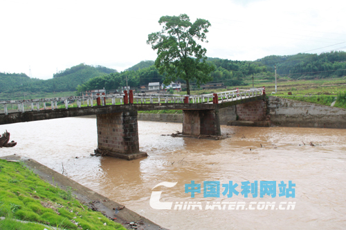 5月7日起,泰寧縣普降暴雨,平時溫順的渠里溪洪水暴漲,流速湍急,不停地對河道兩岸、河中建筑物進(jìn)行沖刷。5月9日10時許,此時的渠里溪洪峰已達(dá)最高點,河道水深3米多,距離路面僅50厘米。此時已建10余年的利民橋中墩墩基被部分淘空,橋板中部下沉斷裂。危急時刻,治理后的渠里溪兩岸堤防經(jīng)受住了考驗,保障了沿岸大渠村、渠口村2529人口,1500畝農(nóng)田安然無恙。