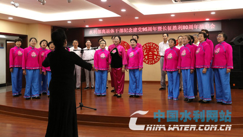 中國(guó)水利網(wǎng)站6月30日訊 (記者 劉彥海 通訊員 羅松)6月29日,水利部離退休干部在部老年大學(xué)舉辦革命歌曲演唱會(huì),紀(jì)念建黨95周年暨長(zhǎng)征勝利80周年。水利部副部長(zhǎng)、黨組成員、水利部老年大學(xué)校長(zhǎng)周學(xué)文,水利部老部長(zhǎng)李昌凡,參觀了老年大學(xué)活動(dòng)室及紀(jì)念建黨95周年書(shū)畫(huà)展,與老干部們一起觀看演出并與參演人員合影留念。