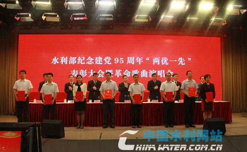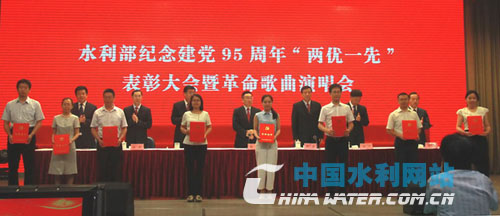 中國水利網(wǎng)站訊(記者 吳頔 王健康 特約通訊員 楊柳) 6月30日,水利部在京舉行紀(jì)念建黨95周年“兩優(yōu)一先”表彰大會(huì)暨革命歌曲演唱會(huì),表彰水利部直屬機(jī)關(guān)優(yōu)秀共產(chǎn)黨員、優(yōu)秀黨務(wù)工作者和先進(jìn)基層黨組織,重溫黨的光輝歷程,頌揚(yáng)黨的豐功偉績,動(dòng)員和激勵(lì)各級(jí)黨組織和廣大黨員樹立一流作風(fēng)、創(chuàng)造一流業(yè)績,為加快水利改革發(fā)展匯聚磅礴力量。水利部黨組書記、部長陳雷出席并講話,他強(qiáng)調(diào),要緊密團(tuán)結(jié)在以習(xí)近平同志為總書記的黨中央周圍,銳意進(jìn)取、開拓創(chuàng)新,凝心聚力、真抓實(shí)干,不斷開創(chuàng)水利改革發(fā)展新局面,為協(xié)調(diào)推進(jìn)“四個(gè)全面”戰(zhàn)略布局、實(shí)現(xiàn)“兩個(gè)一百年”奮斗目標(biāo)和中華民族偉大復(fù)興中國夢(mèng)作出更大貢獻(xiàn)。