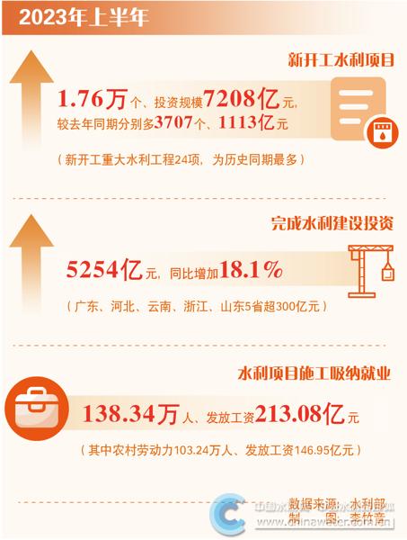水利部數(shù)據(jù)顯示,1月—6月,全國新開工水利項(xiàng)目數(shù)量1.76萬個(gè),特別是新開工重大水利工程24項(xiàng)為歷史同期最多,全國落實(shí)水利建設(shè)投資7832億元,完成投資5254億元,水利基礎(chǔ)設(shè)施建設(shè)規(guī)模和進(jìn)度好于去年同期。