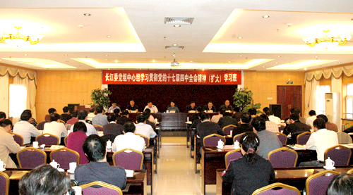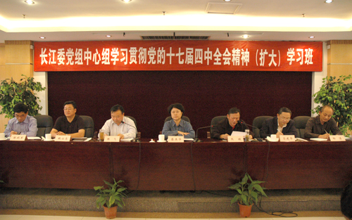 10月27日下午,長(zhǎng)江委黨組中心組學(xué)習(xí)貫徹黨的十七屆四中全會(huì)精神(擴(kuò)大)學(xué)習(xí)班圓滿結(jié)束。長(zhǎng)江委黨組書記﹑主任蔡其華出席。委黨組成員﹑副主任熊鐵作總結(jié)講話。委黨組成員﹑紀(jì)檢組長(zhǎng)陳飛主持。委黨組成員、總工馬建華,委黨組成員、副主任魏山忠,委副主任楊淳,委黨組成員﹑副主任陳曉軍出席。