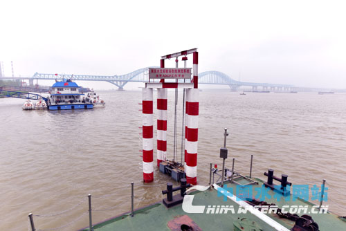 在拍攝現場,長江委水文下游局南京分局局長趙紅星向我們介紹了該局在線測流的自動釆集、傳輸、存儲系統的建設、運行情況,尤其是技術創(chuàng)新方面的獨到之處,他說:該局在線測流系統主要特點是實施了監(jiān)測斷面上采用固定式和浮標式設施,分別安裝了水平式ADCP和走航式ADCP、定位GPS,它的成功運行極大地提高了該局水文測報能力。