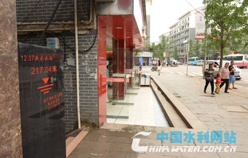 5月25日,基層水文長江行拍攝組在朱沱鎮(zhèn)街上拍攝到了2012年7月23日特大洪水最高值的記錄牌……