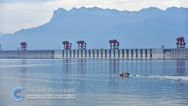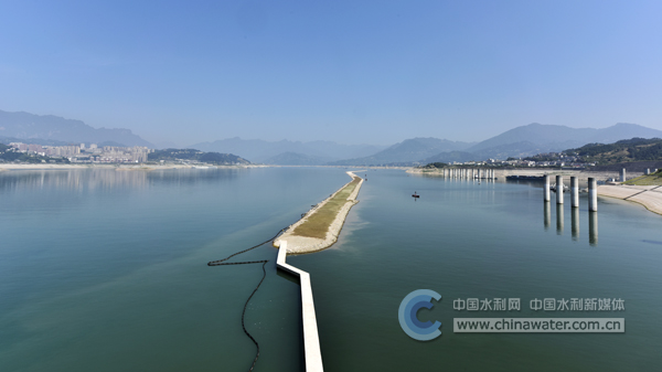 壩前水位145米,隔流堤露出水面(張偉革 攝)