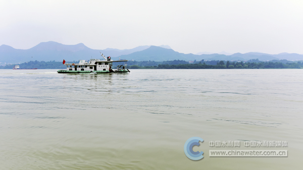 水文測船正在監(jiān)測斷面測驗(yàn)。(特約記者 張偉革 攝)