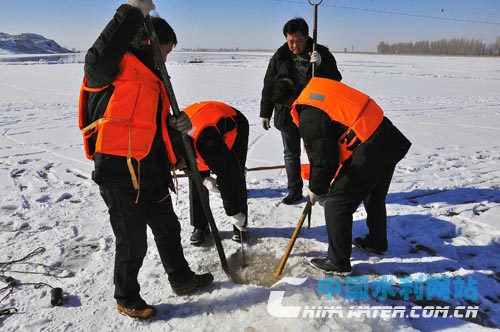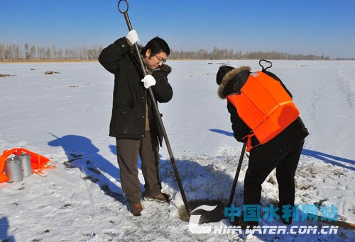 “是呀,天太冷測(cè)量要與時(shí)間賽跑,我們這個(gè)斷面將近400米,要打18個(gè)冰窟窿,用冰镩打直徑約30厘米的冰眼,每打完一個(gè)冰眼就需要20分鐘,”易站長(zhǎng)告訴記者。