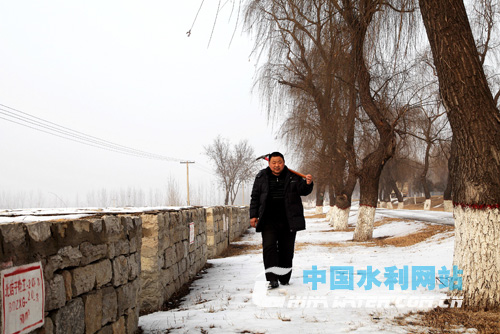 中國水利網(wǎng)站訊 鄭緒和是濟南槐蔭黃河河務(wù)局北店子管理段的職工,在北店子黃河險工8號壩頭,筆者遇到踏著殘雪巡堤查險的他和同事紀立凱,便與之攀談起來。