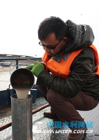每次測(cè)流都有明確的分工,張志恒探水深,曹江濤下鉛魚,趙圳宇掐測(cè)流速,高佳取沙。