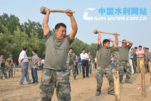中國水利網(wǎng)站6月9日訊 (記者 黃峰 通訊員 李錕 江浩 李留剛 攝影 林淵 于瀾)“嘿!高高舉呀,嘿!重重砸呀,嘿!別打歪呀”……