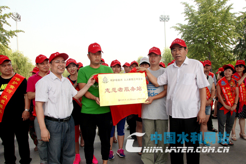 在現(xiàn)場近百名觀眾的熱烈掌聲中,鮮紅的綢布揭開,金燦燦的“呵護(hù)母親河、人人都是江河衛(wèi)士”志愿者服務(wù)站牌匾呈現(xiàn)在眾人面前,標(biāo)志著該服務(wù)站正式落戶濟(jì)南百里黃河風(fēng)景區(qū)。