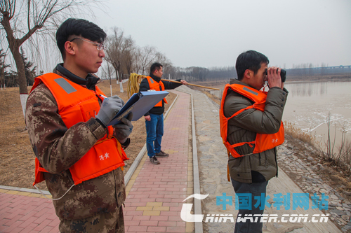 2018年1月27日,受持續(xù)低溫影響,黃河山東濟南段再次出現(xiàn)流凌,在陳孟圈險工的黃河岸邊,歷城黃河河務局遙墻管理段的技術人員正在進行冰凌觀測,測量岸冰厚度,記錄趟凌密度,做好防凌準備工作,確保黃河防凌安全。張慶民 李民/攝