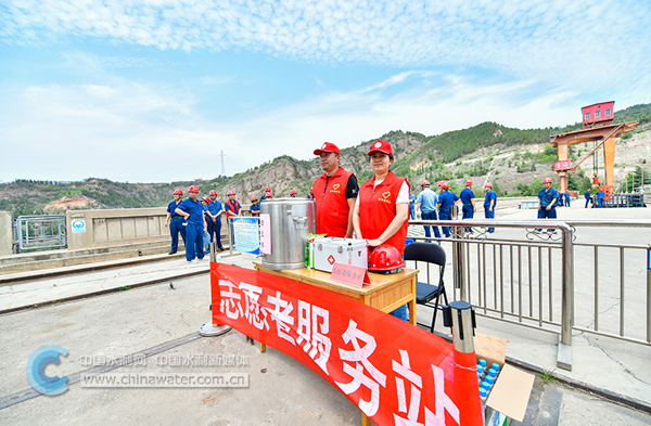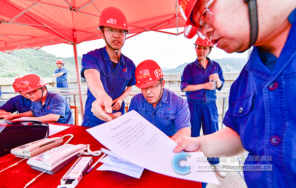 三門峽樞紐壩頂現(xiàn)場指揮部接收防汛指令