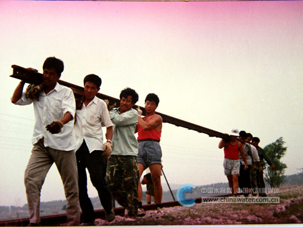 1995年7月,拆軌施工隊(duì)伍正在拆除銀山車站內(nèi)鐵道線路
