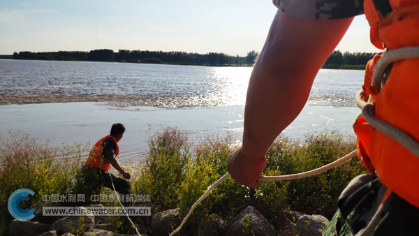 巡查人員探摸根石(紀(jì)紅云 攝)