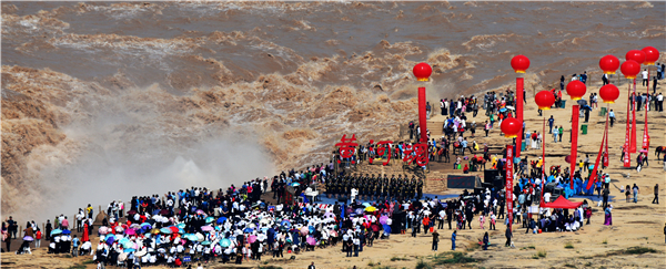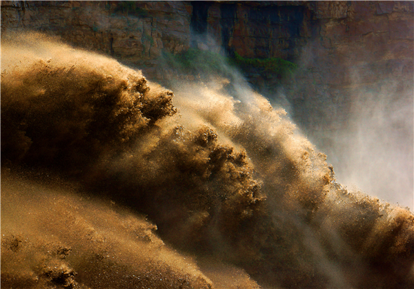 磅礴(黃河萬(wàn)家寨水利樞紐首次沖沙運(yùn)行)(繆宜江 攝)