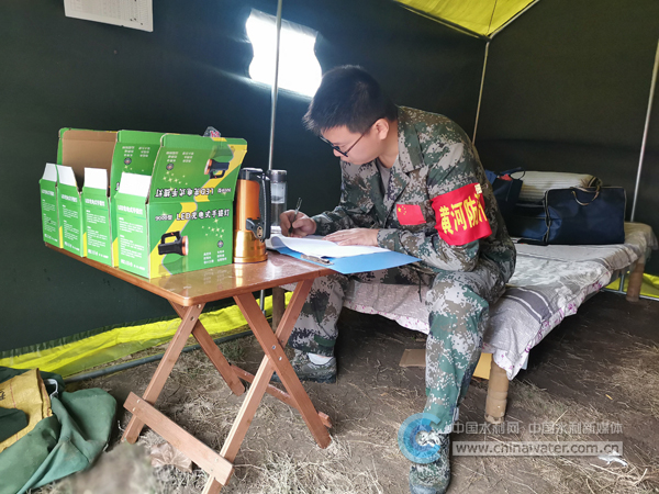一頂帳篷,兩張折疊床,三把手電筒,四個馬扎,寥寥數(shù)物組成了梁山黃河防御秋汛陣地最前沿。在這里執(zhí)行著防汛指令,匯總“戰(zhàn)地”傳來的水情、工情、險情,研究部署防御方案。