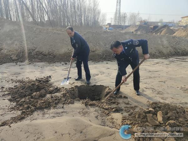 “這個壩窩里怎么這么多管道?不像是春灌取水的,抓緊對四周認真排查一下!敝嘘犻L王鴻祥憑借著多年的執(zhí)法辦案經驗察覺到了管道的不對勁,隨后,他們對工程周圍展開了全面細致的排查。通過排查及走訪當?shù)厝罕姡l(fā)現(xiàn)了事情的蹊蹺。原來是有人在進行春灌的同時,利用地下管道進行非法采砂。通過進一步擴大排查范圍,發(fā)現(xiàn)孫口水文站東側300米處已經打起了圍堰,并開始了非法采砂行為。但現(xiàn)場未發(fā)現(xiàn)嫌疑人,初步判斷應該是利用夜間進行非法采砂。為了不打草驚蛇,人贓并獲抓獲涉案人員,王鴻祥等人悄悄對現(xiàn)場拍照,固定前期證據,并第一時間向局長匯報。